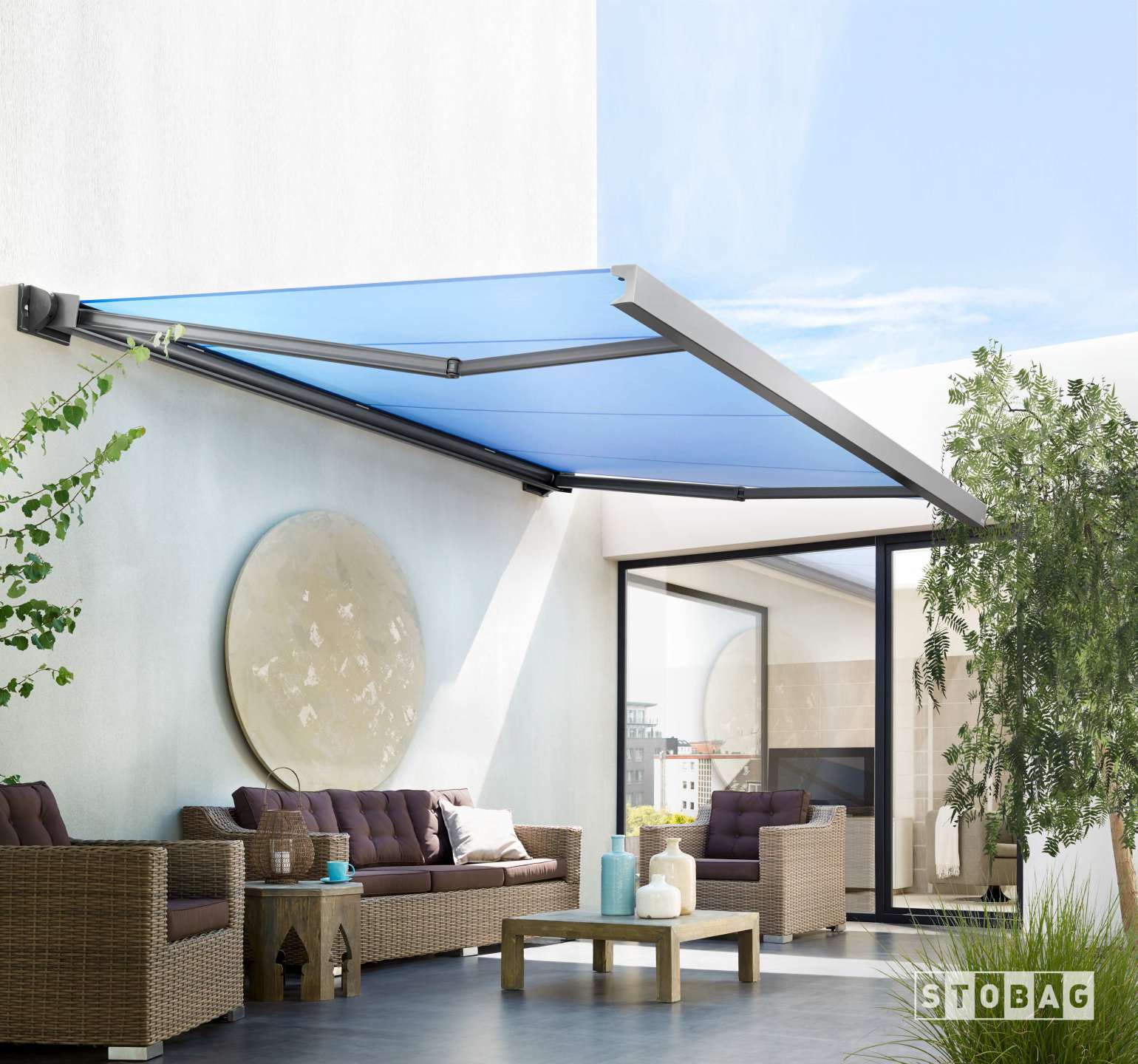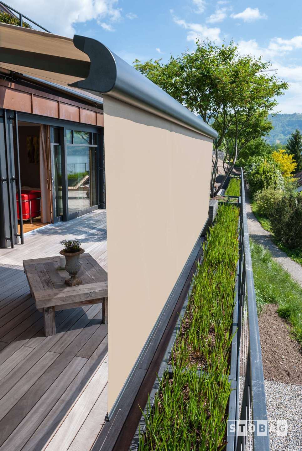 The premier full-cassette summit retractable shade system features a contemporary design and provides shade and year-round protection from the elements.